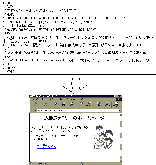 図2.6 HTML文書とWebページ(Internet Explorerによる表示)